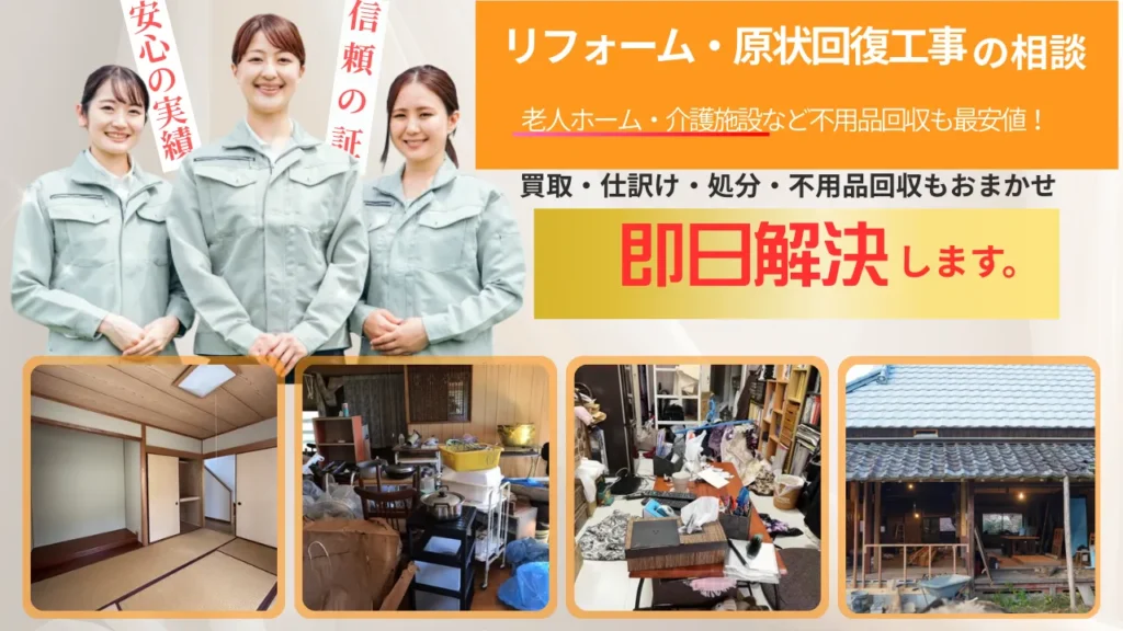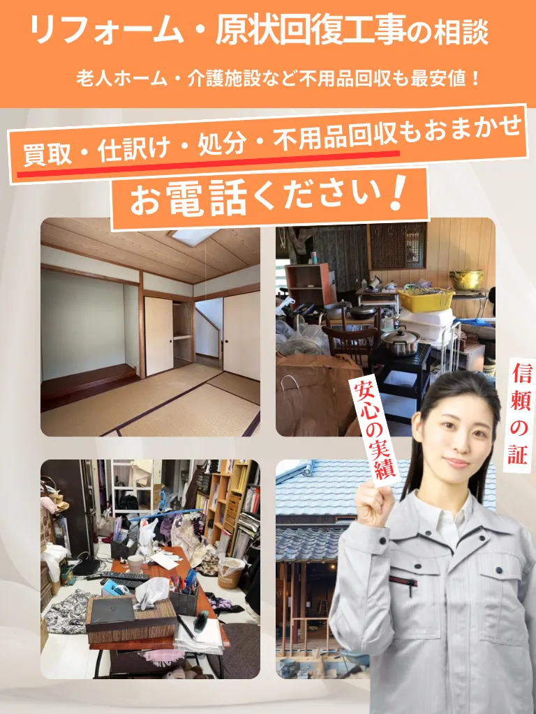 片付けからリフォームまでワンストップの私たちにお任せください。